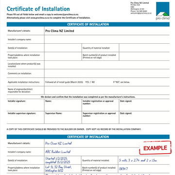 * Early Close In is achieved when wall underlay is installed according to the relevant Early-Close-In Application guide (see above), and all elements and junctions of the building envelope are installed (except cladding) to achieve compliance with NZBC Clause E2.2 ie, installed roofing, windows and doors, window and door seals, flashings, penetration seals. Continuation of internal work is subject to a pre-line inspection. Warranty coverage does not extend to damage or delays caused by weather events deemed force majeure.