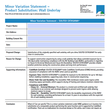 SOLITEX EXTASANA® can be used as an Early-Close-In wall underlay on timber framed buildings in accordance with Codemark CMZN30032